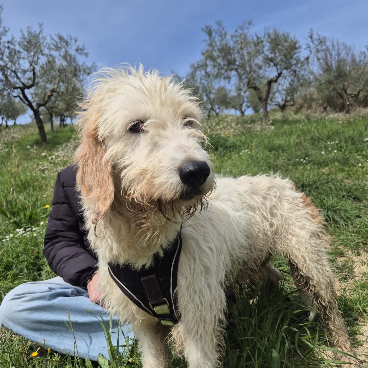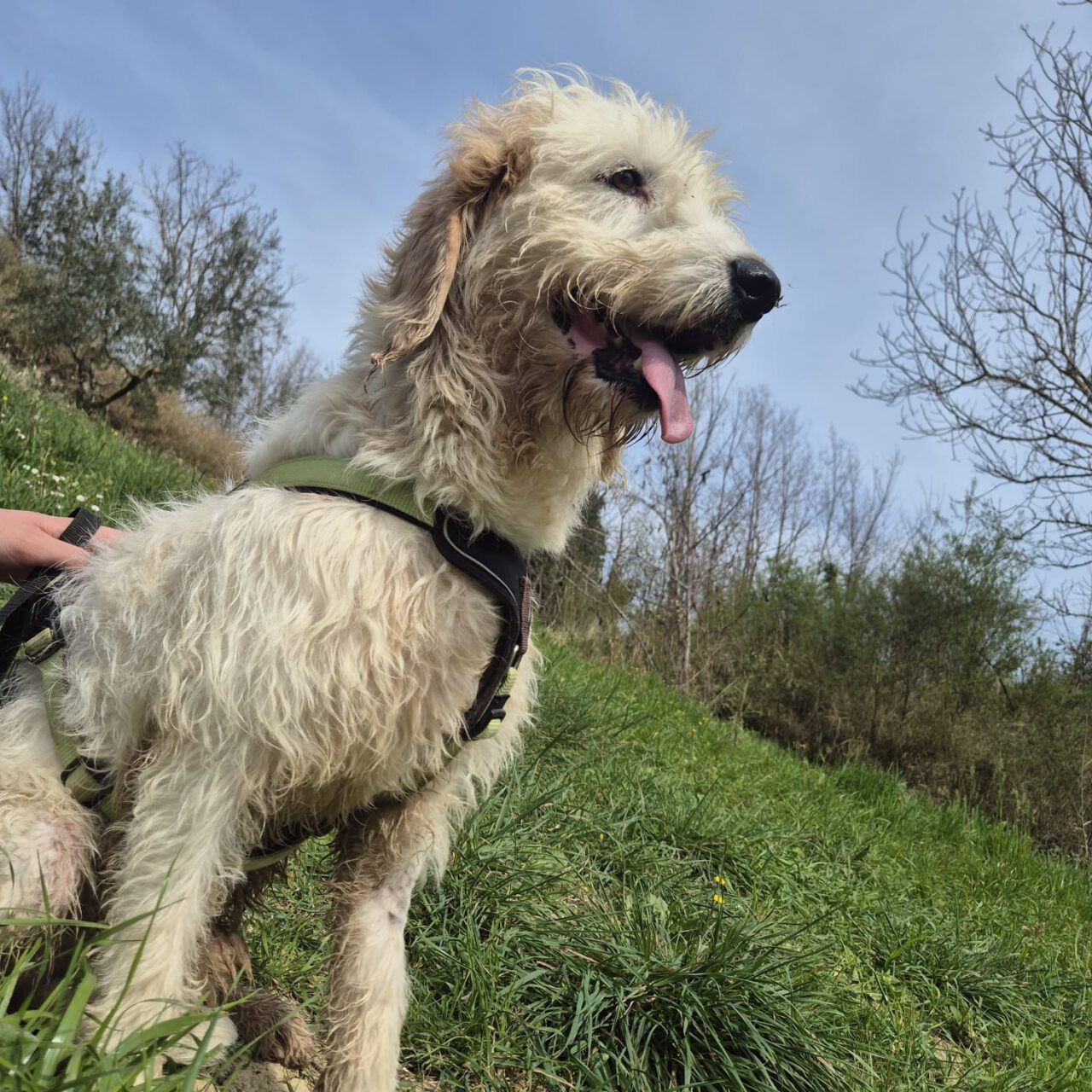 Oleg war ein Streuner. Wurde er ausgesetzt, oder ging er bei der Jagd verloren? Wir wissen es nicht. Viel ist über Oleg im Moment noch nicht bekannt. Trotz seines jungen Alters ist er ein eher ruhiger Vertreter. Er lernt gerade an der Leine zu gehen, das klappt in kleiner Gruppe auch schon recht gut. In einer großen Gruppe ist er eher unsicher. Oleg ist ein Rohdiamant und muss noch viel lernen. Wir suchen für Oleg jetzt seine eigene Familie, wo er in Ruhe ankommen kann und die Welt erkunden kann.